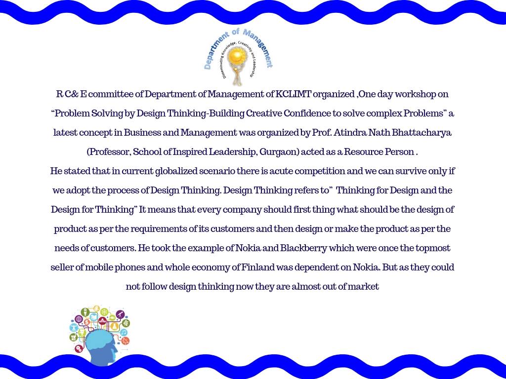 One day workshop on Problem solving by design thinking building creative confidence to solve complex problems