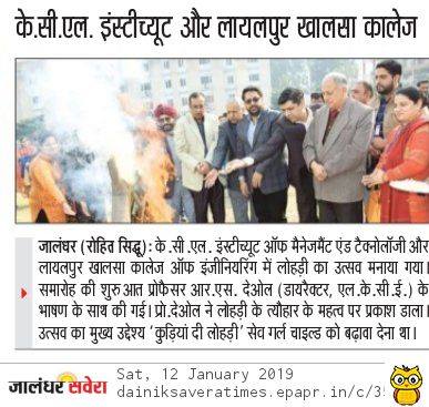• #MEDIA coverage of #lOHRI19 celebration@ #kCLIMT #JALANDHAR